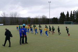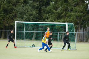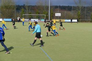 Eine Woche später war die D2 dann am 7. März bei der SG Hünstetten in Görsroth zu Gast. Die Hünstettener belegen aktuell Tabellenplatz 3 und lieferten unseren Jungs ein Spiel auf Augenhöhe. Wir gingen zwar relativ zügig nach neun Minuten mit einem Treffer von Ali mit 0:1 in Führung, aber nur elf Minuten später schaffte Hünstetten den Ausgleich. Hünstetten hatte sich strategisch gut aufgestellt und die Jungen erhielten von ihren Trainern wiederholt die Anweisung, gut auf die ihnen jeweils zugeteilten Stürmer unserer Mannschaft aufzupassen. Wir Eltern am Spielfeldrand erfuhren so, dass der Hünstettener Luis sich nur auf unsere „Nr. 20“ (Yassin) konzentrieren sollte. Da die „Bewachung“ gut funktionierte, kam dieser bei dem ausgewogenen Spiel daher auch nicht zum Treffer. Während sich unsere Jungs wieder zunehmend in der Mitte des Spielfelds „verzettelten“, ging Hünstetten nur drei Minuten nach dem Ausgleichstreffer sogar mit 2:1 in Führung. Für unsere D2 war es eine durchaus ungewohnte Situation, mit einem Rückstand in die Halbzeitpause zu gehen.