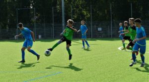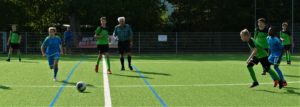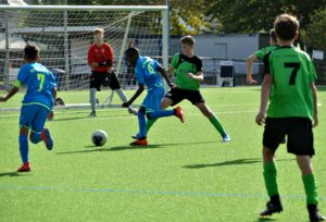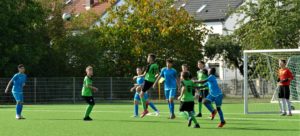 Und so war die erste Halbzeit für uns Eltern schön anzusehen: Die Jungs kämpften um die Bälle, ließen sich vom Gegner nicht abschütteln und nutzten die Räume viel besser als sonst. Und vor allen Dingen: Wir hörten ihre Absprachen und Ansagen, auch die Trainer hatten nach dem Schock vom letzten Wochenende ihre Fassungslosigkeit überwunden – die Kommunikation lief gut. So gestaltete sich die erste Halbzeit des Spiels sehr ausgewogen und dynamisch mit Chancen auf beiden Seiten, unsere Mannschaft konnte den Attacken aus Unterliederbach gut begegnen und unsere Abwehr war gut aufgestellt. In der Mitte der ersten Halbzeit fiel zwar das 1:0 gegen uns, aber auch dadurch ließen sich die Jungs nicht unterkriegen.