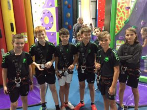 Aufgrund des schlechten Wetters hat Trainer Gernot Anders kurzfristig umdisponiert und das geplante Fußballgolf zugunsten eines Indoor-Klettergartens fallen gelassen. Viele Mitglieder des Spitzenkaders der D-Jugend des JFV konnten teilnehmen und so hatten alle einen Heidenspaß mal ganz ohne Ball …